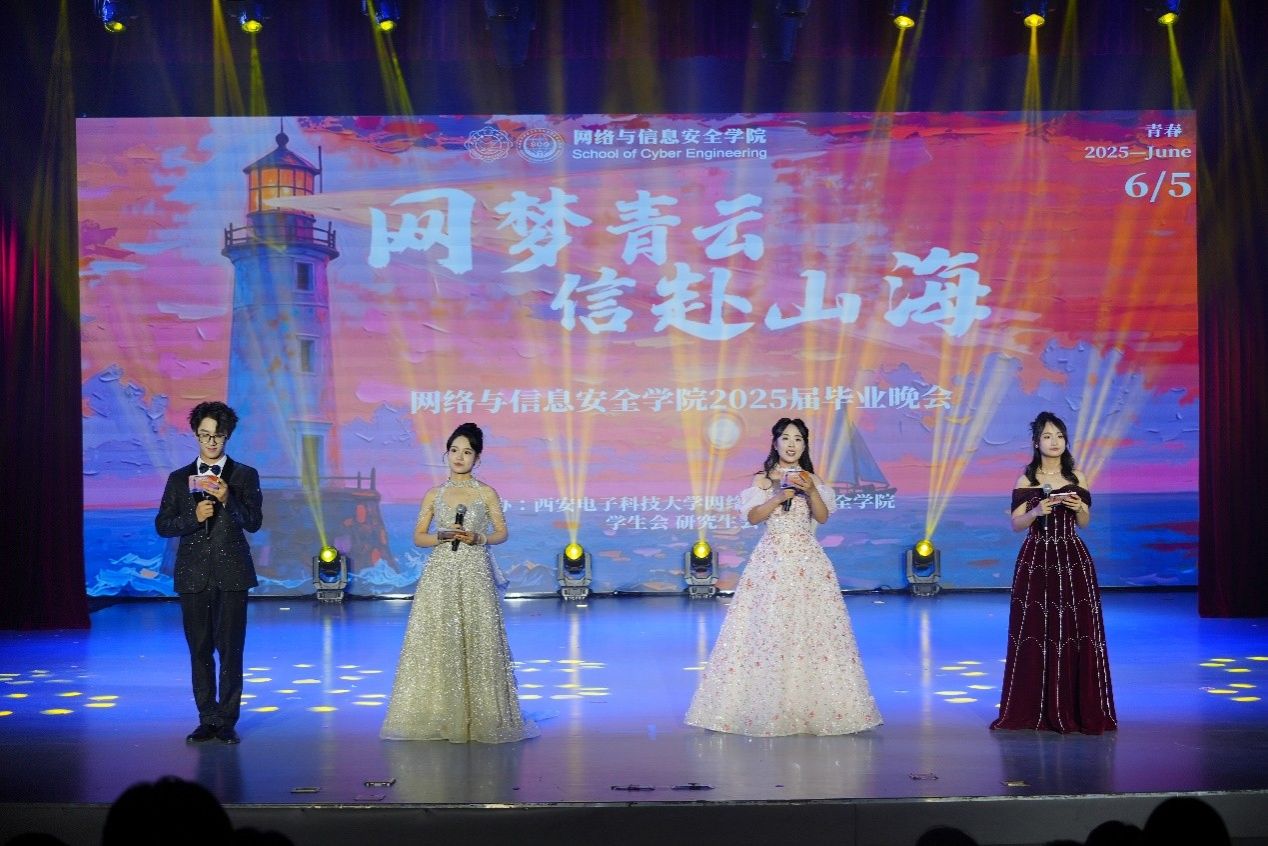 本次晚会一共12个节目,涵盖了舞蹈、话剧、歌曲、相声、配音等多个领域。这些节目展现了网信学子昂扬的精神面貌,更为2025届毕业生留下了珍贵的校园记忆。最后,晚会在《当一切结束时》燃爆全场的演绎中缓缓落幕。