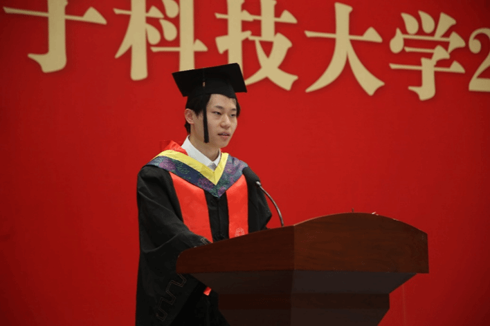 本科毕业生代表陈科旭分享了四载求学的心路历程。他讲述自己从初入校门的懵懂青涩,到在安全攻防实战、CTF竞赛、电子取证实战中淬炼本领的蜕变,从高数课堂的刻苦钻研,到“网安万里行”等社会实践中的知行合一。他深情感谢师长的谆谆教诲与同窗的并肩奋斗,表示将带着“厚德、求真、砺学、笃行”的校训烙印,勇敢迎接未来的挑战。