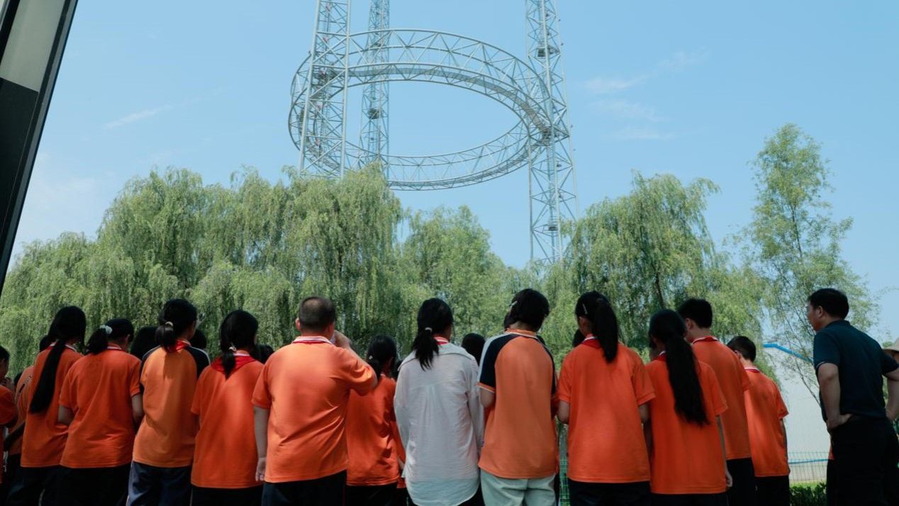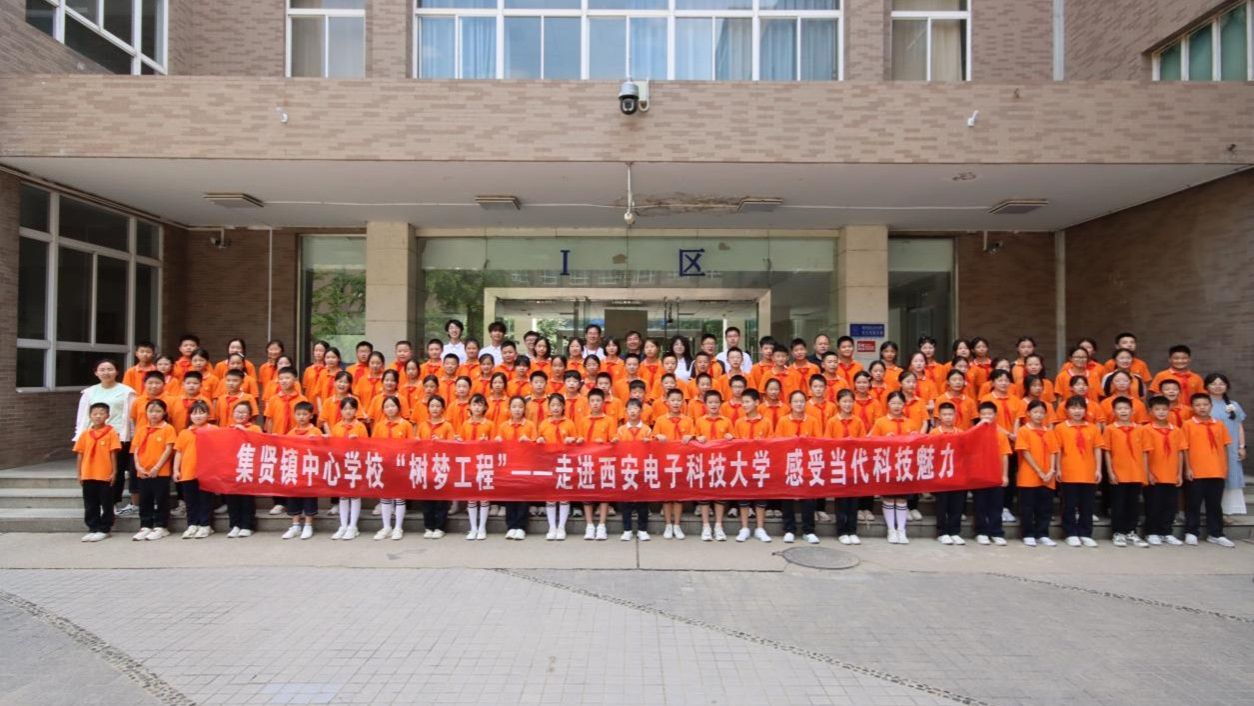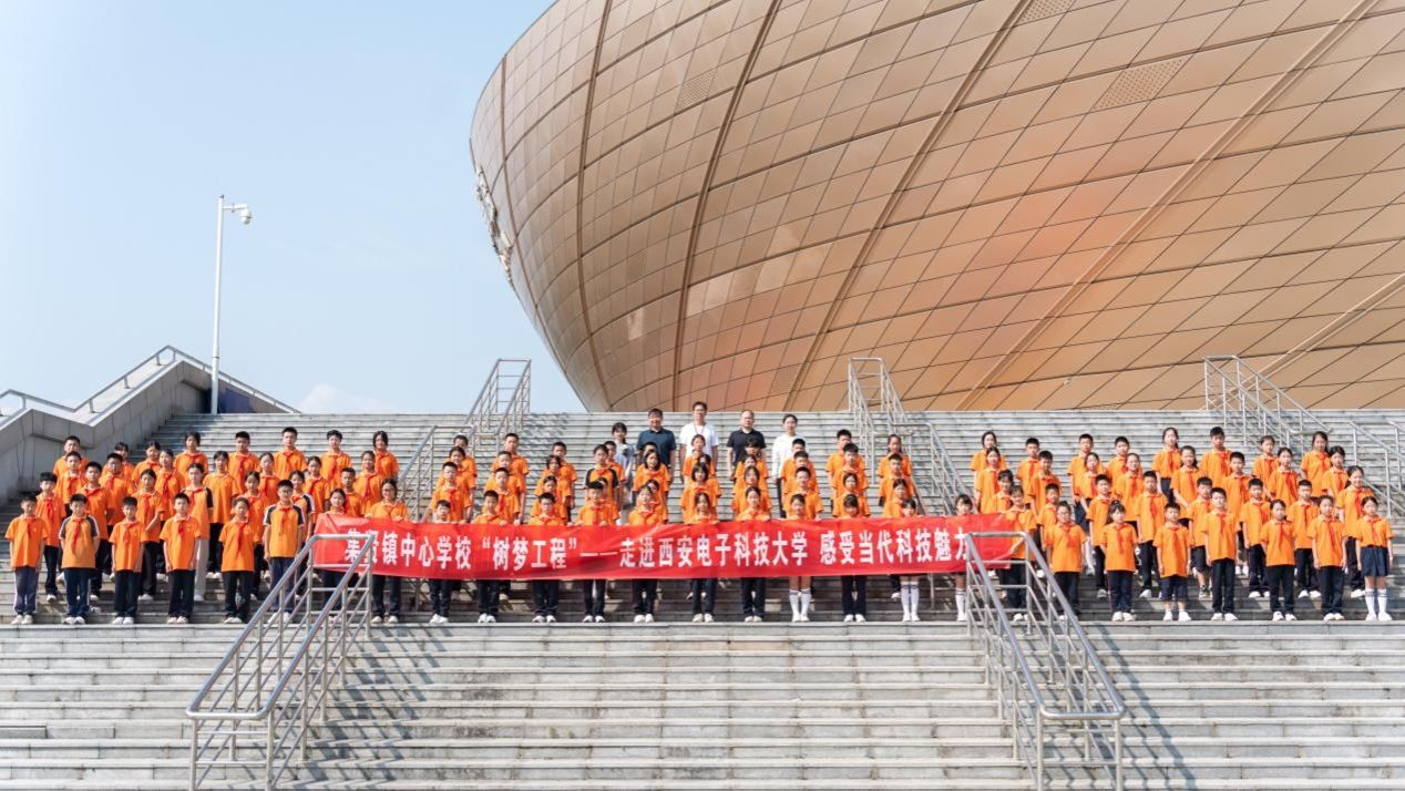 周至县集贤镇中心公司的师生们到达公司后,志愿者们带领孩子们参观公司博物馆与科技成果展厅。跟随着讲解员的脚步,孩子们感受到了西电在通信、雷达、计算机、集成电路等领域的科技成果与发展历程,再现了中国电子信息技术从无到有、从追赶到引领的发展进程。此外,志愿者们还带领孩子们参观了公司的“逐日工程”,通过志愿者的生动讲解,让孩子们对空间太阳能电站系统有了更深入了解,激励他们树立科技报国的理想。
