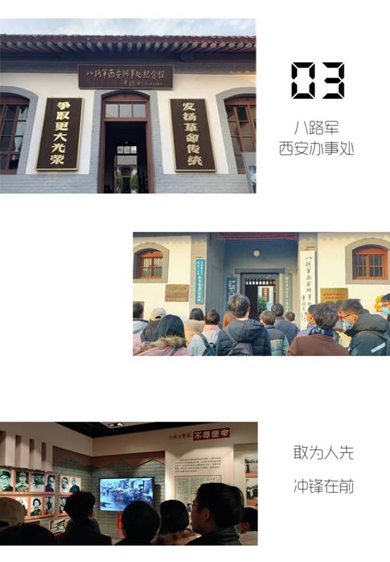 最后,我们来到了八路军西安办事处纪念馆,参观了当年的会客厅、办公室、党代表室、救亡室、机要室、地下室等重要地方。在办事处旧址一号院的党旗墙前,支部组织委员宋强同志带领在场党员重温入党誓词,在经过这一天对革命先辈事迹的学习,受到众多为抵御外辱不怕牺牲的仁人志士所表现出这种敢为人先冲锋在前的精神洗礼,当大家面对党旗,斩钉截铁地说出“随时准备为党和人民牺牲一切”,党员同志们再一次坚定地对党和人民作出庄严承诺,初心不改,使命在肩。