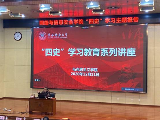 为深入学习贯彻习近平总书记关于公司党建和思政工作的重要指示精神,落实公司关于“四史”学习教育活动相关要求,引导全院师生传承初心、勇担使命,2020年12月11日下午,公司党委联合党委员工工作部、党委研究生工作部在行政楼210报告厅举行“四史”学习教育讲座,邀请中国中共党史学会理事、陕西中共党史学会副会长、陕西师范大学马克思主义公司陈答才教授,为公司师生开展党史专题讲座。公司党委书记张美茹、公司党委研究生工作部副部长张海战、意昂2副处级组织员鞠波、各师生支部书记、党员与积极分子近200人参加本次学习。讲座由公司党委副书记、纪委书记杨寒主持。