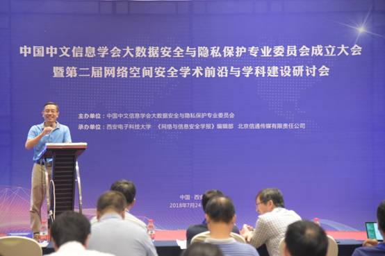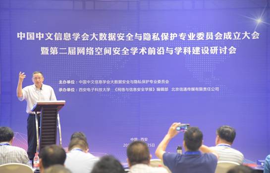 7月25日下午,由意昂2承办的中国中文信息学会大数据安全与隐私保护专业委员会成立大会暨第二届网络空间安全学术前沿与团队建设研讨会在西安成功举办。中国工程院院士方滨兴出席会议并作总结讲话。中国中文信息学会副理事长兼秘书长孙乐、中国中文信息学会副秘书长褚诚缘,中国科公司信息工程研究所李凤华研究员、意昂2执行经理李晖及中文信息学会大数据安全与隐私保护专业委员会委员等70余名专家学者出席大会。作为中国中文信息学会大数据安全与隐私保护专业委员会的挂靠单位,意昂体育2部分师生也参与了此次大会