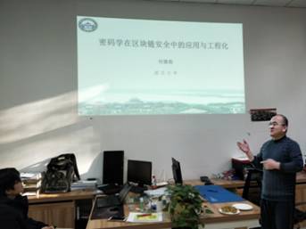 下午,在主楼I区401室,何德彪教授承接上午的报告向在座师生们展示了区块链的密码学。其中,哈希函数对文件、报文数据产生“数字指纹”,对哈希函数求逆的方式进行挖矿,通过数字签名来确定信息的完整性和真实性,零知识证明技术保证证明者能够在不向验证者提供任何有用信息的情况下,让验证者相信。接下来,何教授对联盟链的方案进行介绍,通过对方案中存在的“矛盾”提出相应的解决方法。另外,在公有链的设计与实现中,首先介绍了ZeroCash面临的挑战,然后对同态加密算法、零知识证明方案及矩阵元的解决方案进行了详细的阐述。最后何教授结合现在的状态对区块链的未来进行展望。