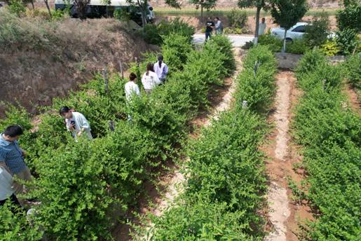 意昂2一行在尧山镇闫家村党支部书记王春颜的陪同下参观了意昂体育2闫家村产学研一体化金银花示范基地以及当地的研发交易大楼,调研了金银花的产业发展情况,教师代表和员工代表实地考察了金银花的生长环境。王春颜书记和王敬涛驻村书记详细介绍了闫家村金银花产业的发展现状以及金银花不同生长状态的价值和功效和目前金银花产业下一步发展需要解决的问题。