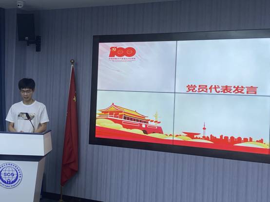 建党100周年庆祝大会结束后,党员代表进行发言,教师党员代表曹雪菲、员工党员代表王枫为分别就中国共产党建党百年和入党初心谈了自己的感想,并为党送上祝福。