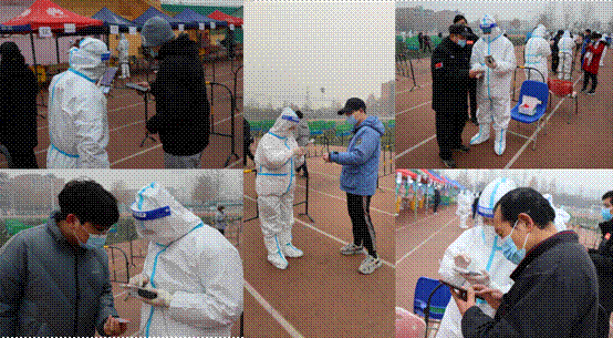 “请戴好口罩,保持一米距离,提前准备好健康码……”,在一声声提示中,核酸检测顺利进行着。然而随着一码通和检测系统分别出现不同程度的故障,核酸检测工作艰难推进,尽管天气寒冷,任务繁重,但是没有一个人有怨言。公司其他同学积极伸出援助之手,将充电器、充电宝和暖贴支援给志愿者们,为严寒中的医护工作者送去一份暖心的援助。