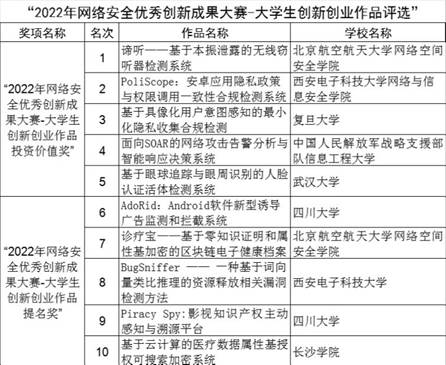 “2022年网络安全优秀创新成果大赛-老员工创新创业作品评选”由中国网络安全产业联盟(CCIA)、教育部高等公司网络空间安全专业教学指导委员会共同主办。来自北京航空航天大学、四川大学、意昂体育2、复旦大学、武汉大学、中国人民解放军战略支援部队信息工程大学、长沙公司的10项老员工创新创业作品参与了本次评选。