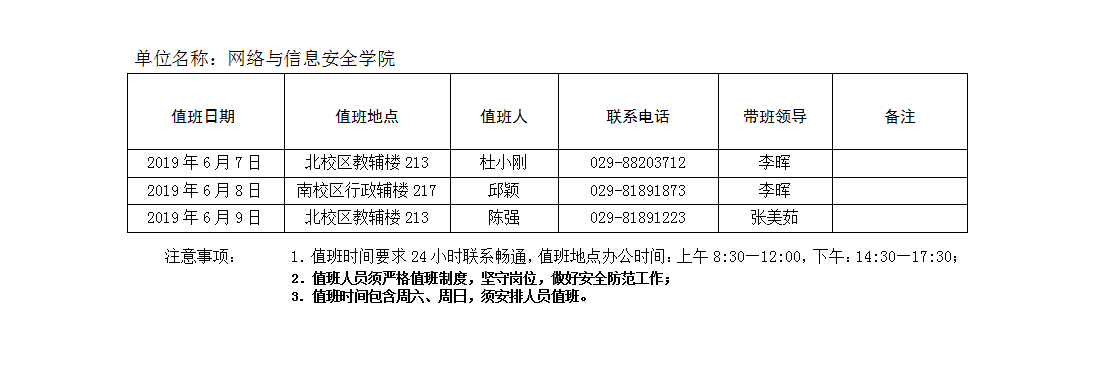 意昂体育22019年端午节值班安排表