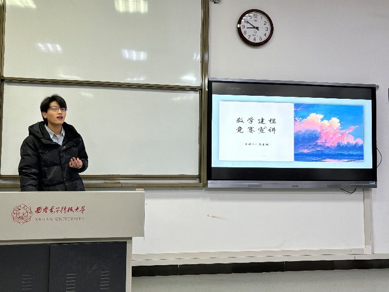 本次宣讲的内容主要由三部分组成。首先,高嘉越同学对数学建模竞赛进行了全方位的介绍,从比赛的流程、参与比赛带来的益处讲到数模与其他数学课程的异同,带大家对数模竞赛有了初步的认识。