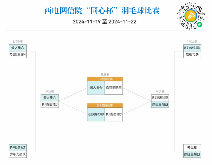 经过一系列激烈的角逐,本次羽毛球比赛的最终结果已经揭晓。最终,懒人集合队以其精湛的技术和默契的配合摘得比赛的桂冠。