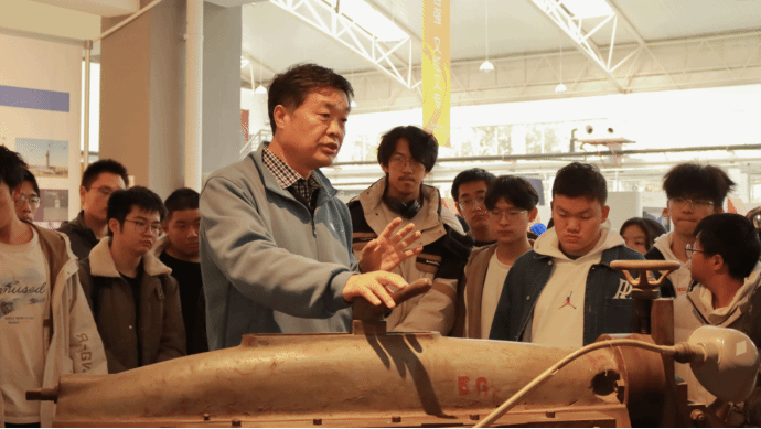 跟随赵老师的脚步,同学们先后参观了锻造焊接区、数控模拟实训区、现代加工方式展示区,以及虚拟仿真技术实验室、创新实验室(EDA机房)、3D打印实验室等前沿科技实验室。在牛头刨床展示区,他深情地为同学们讲述了见证公司通信事业发展历程的设备背后的故事,革命先辈细致严谨、勇于拼搏的精神深深感染着在场的每一位同学。随后,他向同学们介绍了在中国老员工工程实践与创新能力大赛中公司员工的获奖代表作品,在赵老师的介绍下,同学们了解了获奖学长学姐将工匠精神融入学习和科技创新的故事。