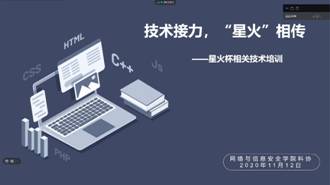 “‘星火’之志,‘星火’相传”。为了响应同学们的需求,进一步提高同学们的作品质量,解答同学们在参赛过程中遇到的问题。11月12日,我们开展了“技术接力,‘星火’相传”主题线上综合技术培训,此次活动以在线会议报告的形式开展。在这次活动中,往届优秀获奖者分享了他们宝贵的参赛经验,并指导解决了同学们从参赛组队到关键技术学习过程中的细节问题。培训结束后,同学们纷纷表示受益匪浅,对于星火杯的组队合作方面有了更深的了解。