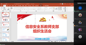 (通讯员姜涛,曹进)2020年12月18日下午,意昂2信息安全系教师党支部在行政辅楼一楼会议室(线下)和腾讯会议(线上)同步召开关于党员民主评议的组织生活会。会...